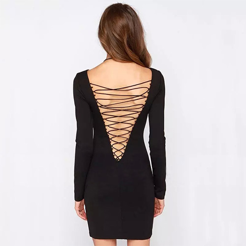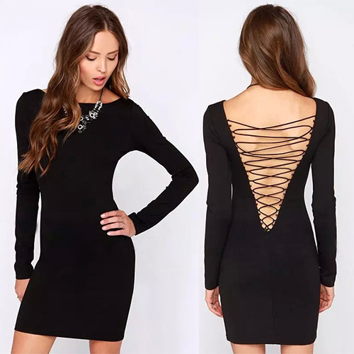 Show your beautiful skin and charming curve with this dress. It features balck color,a kind of mysterious and flattering color. Backless style,with crisscross strap,sexy and charming. Long sleeve,slim fit and package hip design.