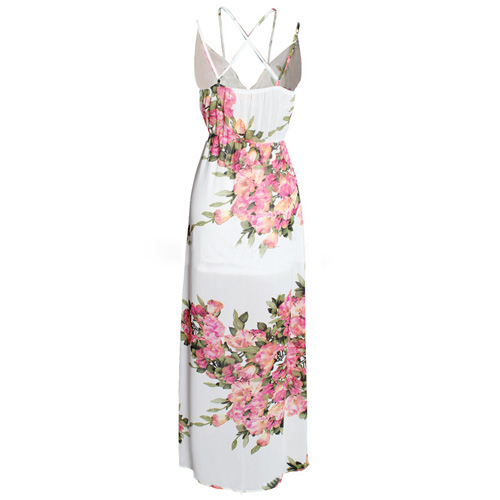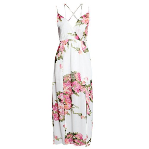 This dress features sling style,with backless,slit hemline and deep v-neck design,