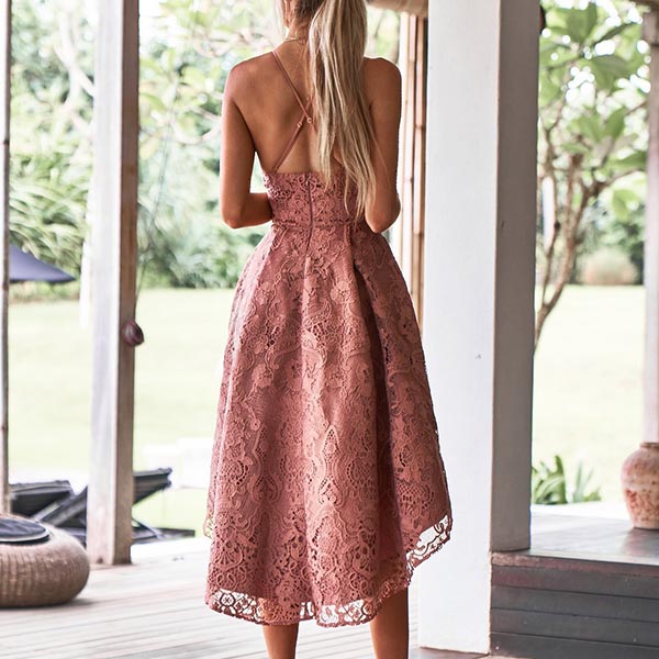 Sexy Backless Deep V-neck High-low Hem Sling Lace Party Dress