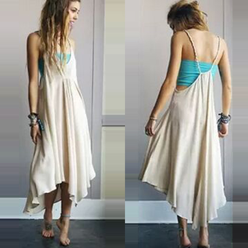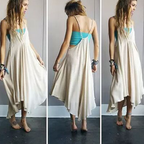 Sexy Backless Deep V-neck Irregular Hem Loose Sling Chiffon Dress