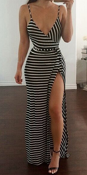 like this maxi dress, of course! Striped style,with backless,deep v-neck and slit hemline,sexy and