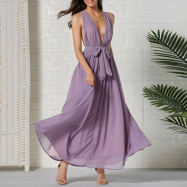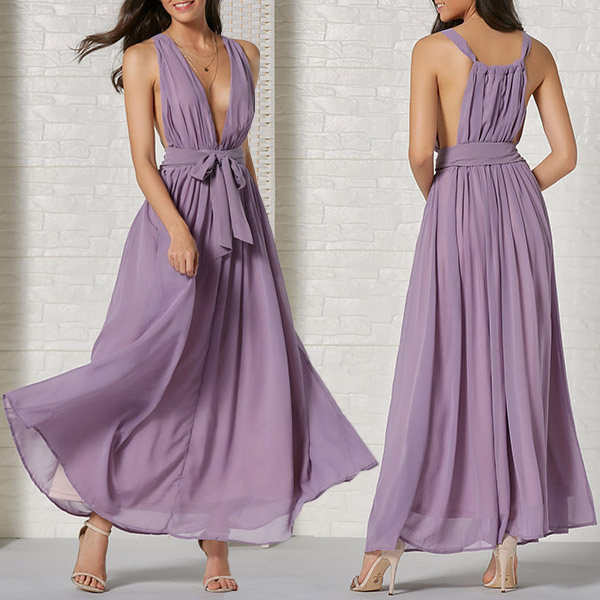Summer nights call for something refreshing yet still breathtaking. And this maxi dress is just what you are looking for. Its backless and deep v-neck design will give you a sexy and charming look. Take it walking on the beach on lying on the beach,so relaxing!