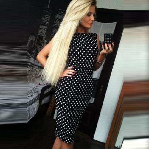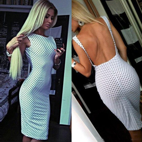 This dress features dots pattern,filled with chic and stylish sense. Backless,sleeveless