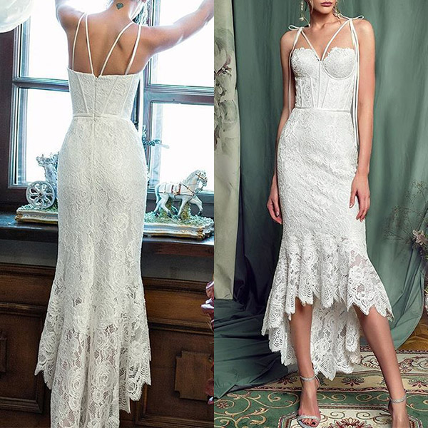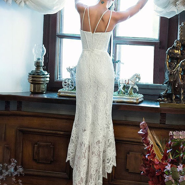 Bear the envious eyes wherever you go thanks to the feminine taste of this dress. Slingstyle,with backless,fishtail hem and a fit silhouette,this dress not only can showcaseyour alluring image,but also can accentuate your slender figure. For the comingparties and gatherings,this lace dress is a good choice!