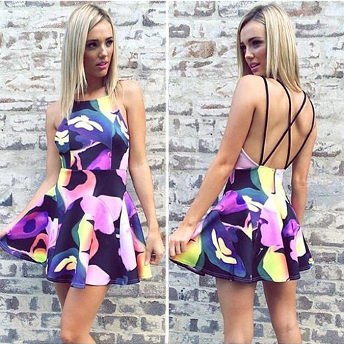 You will spend a cool and wonderful summer with this dress. Features floral print pattern,showing your sweet and fresh flavor. Sling style with backless design,sexy and charming. Showing your charming curve in this dress!