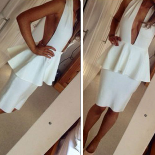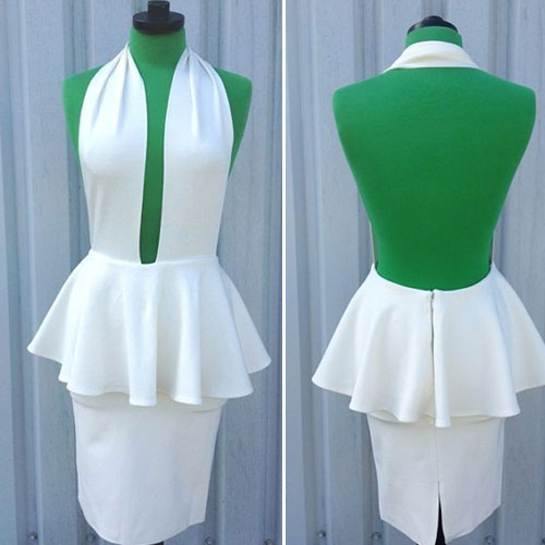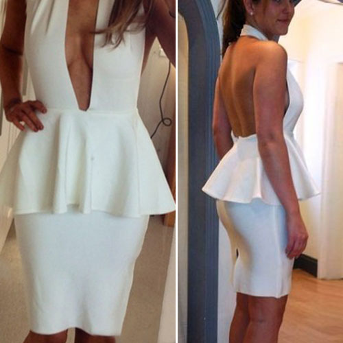 You will certainly be the focus and make men drool in this dress. Features backless style,halter design. Front with a big cutout,showing your seductive cleavage. Waist with flouncing design,slim fit and package hip,perfect show your charming curve.