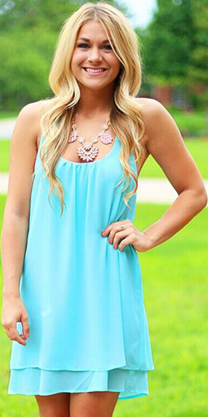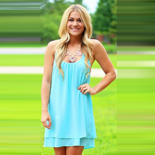 Backless with flouncing design makes it so charming and sexy. A loose