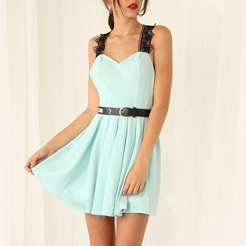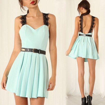 This dress features sling style,with lace spliced and backless design,gives you an eye-catching