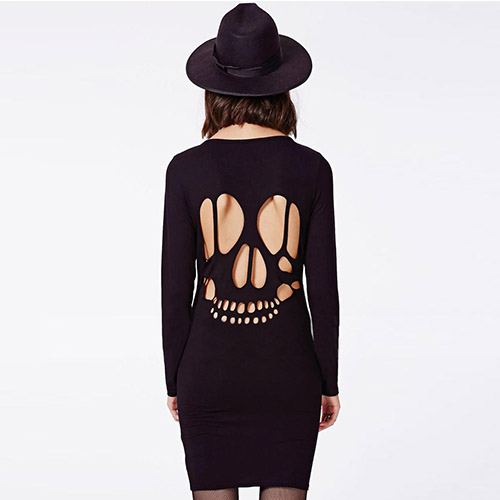 Backside with a hollowed out skull head design,sexy and chic. Long sleeve,round neck,