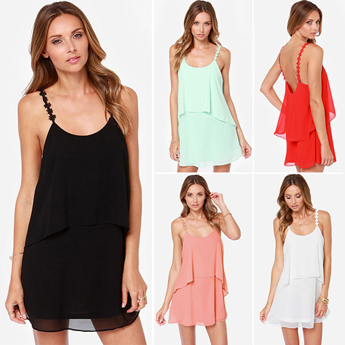 For the hot summer,there is nothing more proper than this sling chiffon dress.