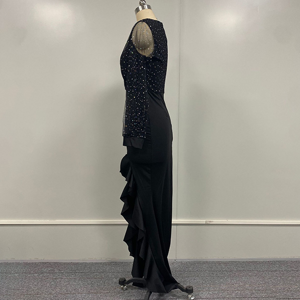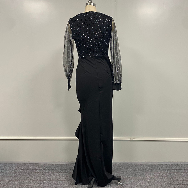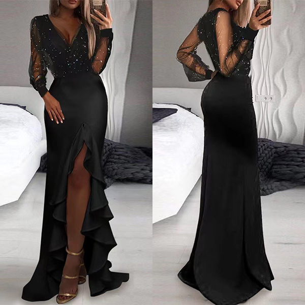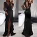 Sexy Backless Lace Spliced Floor-length Evening Dress