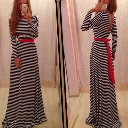 You will be the focus and draw their attention if you wearing this dress to a party. It features stripes pattern,backless style,