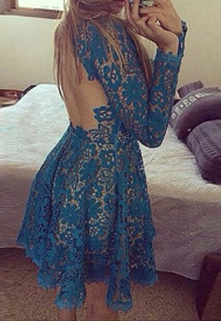 Show your sexy flavor and charming figure through this lace dress. It features backless style,showing your beautiful back. Long sleeve and gathered waist design,outline your seductive curve.