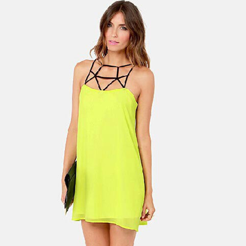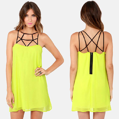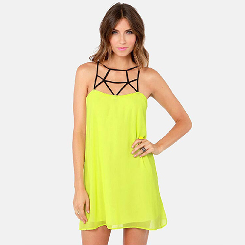 This dress features bright yellow color,can perfect set off your fair skin and makes