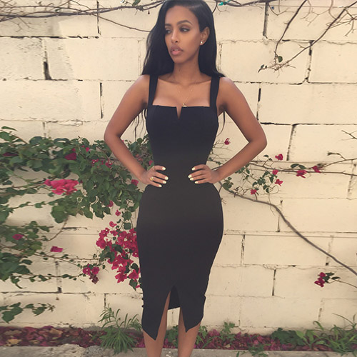 This dress features sling style,with backless,low-cut and slit hemline design,gives you an