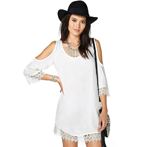 is bound to command a place in your closet. Its backless,off-shoulder and lace spliced design makes