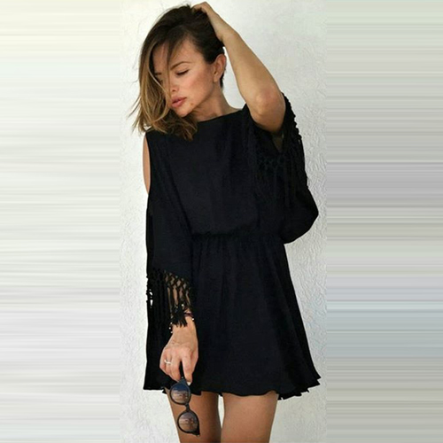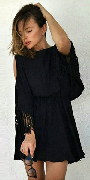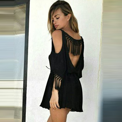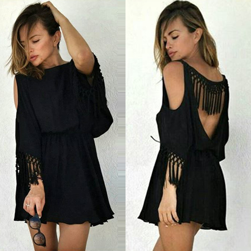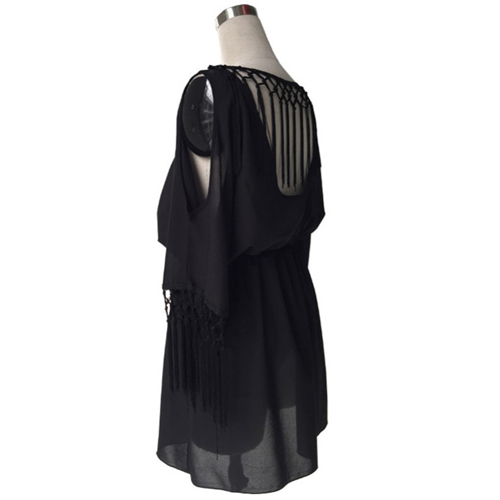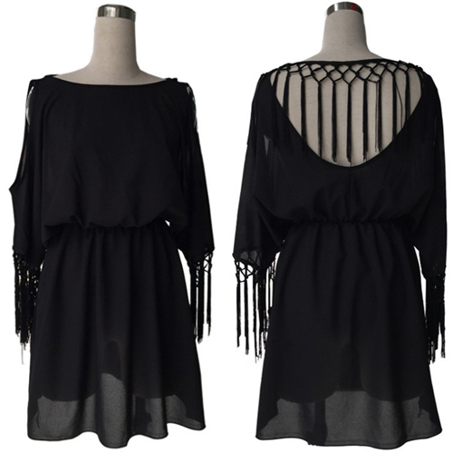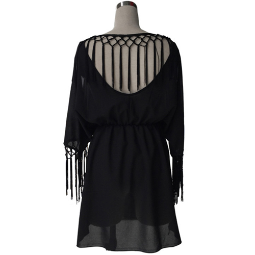 it features backless, but it increased batwing sleeve and tassels design, give you a sense of sexy and