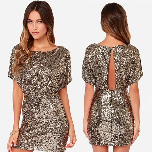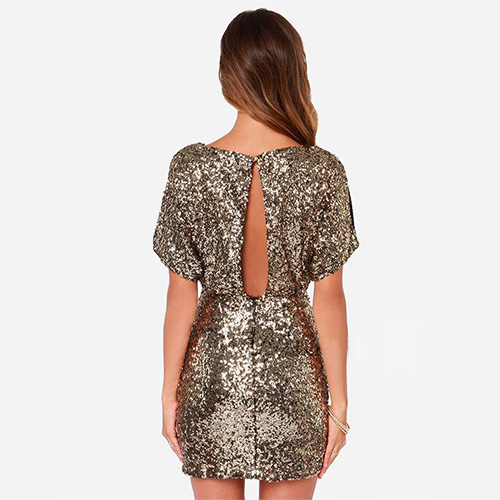 You will be more charming and glamorous in this dress. It features solid color,with sequins for decoration. Backless style and short sleeve design. You can pair it with your golden color high-heeled shoes.