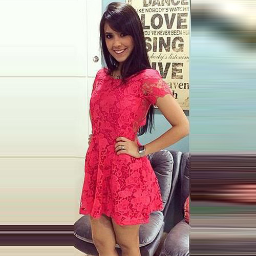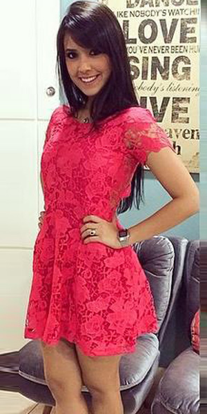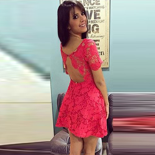 This dainty little short sleeve lace dress features backless style,with short sleeve and round