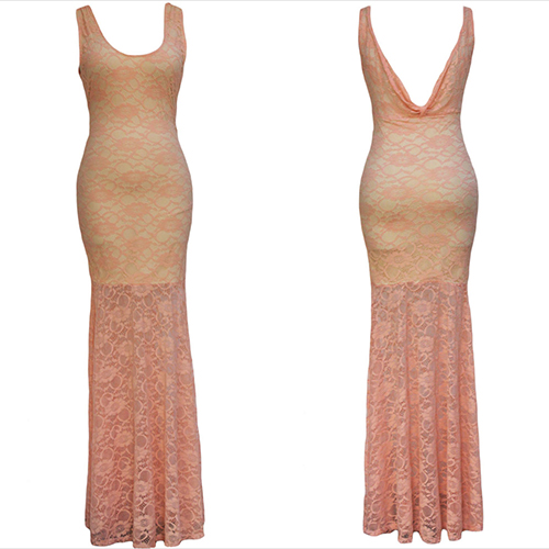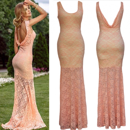 Sexy Backless Sleeveless Floor-length Lace Party Dress