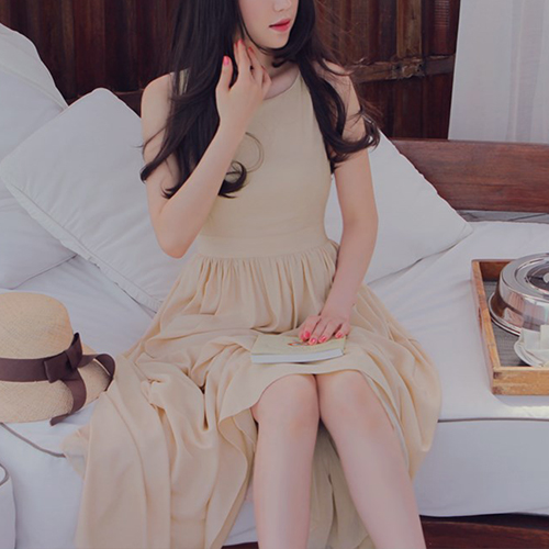with sleeveless and gathered waist design. No matter for dating,gatherings or street shoot,