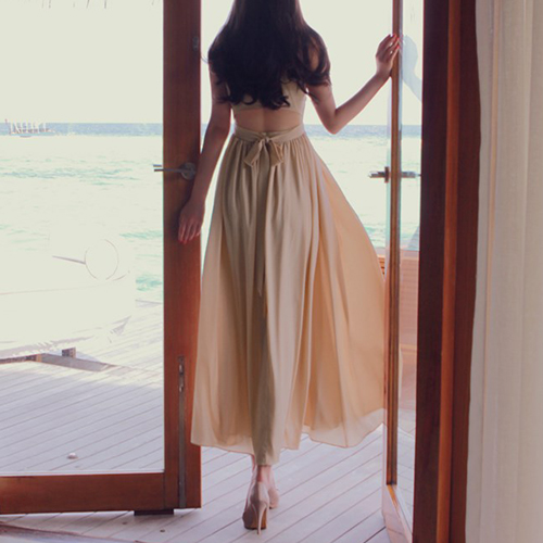 You would instantly be the sexy and elegant goddess in this dress. It features backless style,