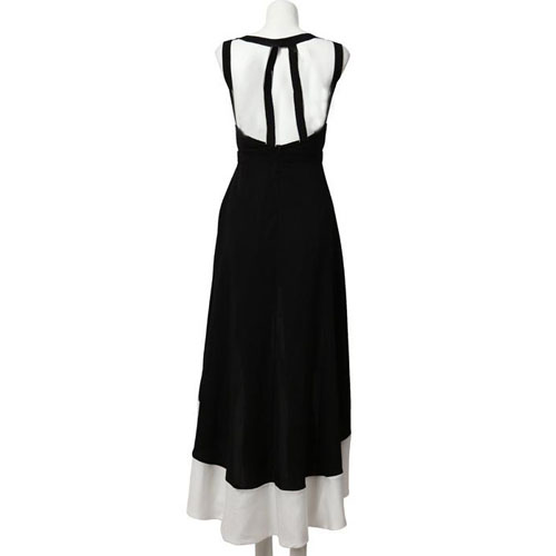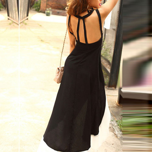 Backless style,with sleeveless and irregular contrast color hemline design. Attracted by it? Buy one!