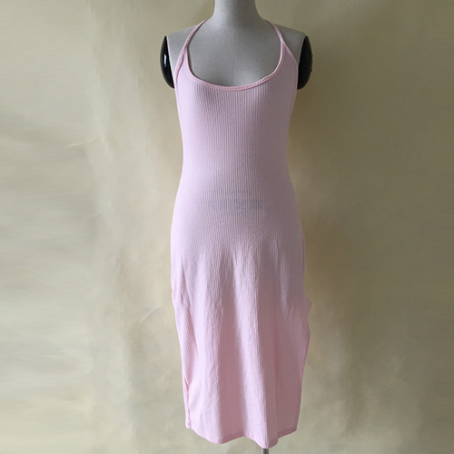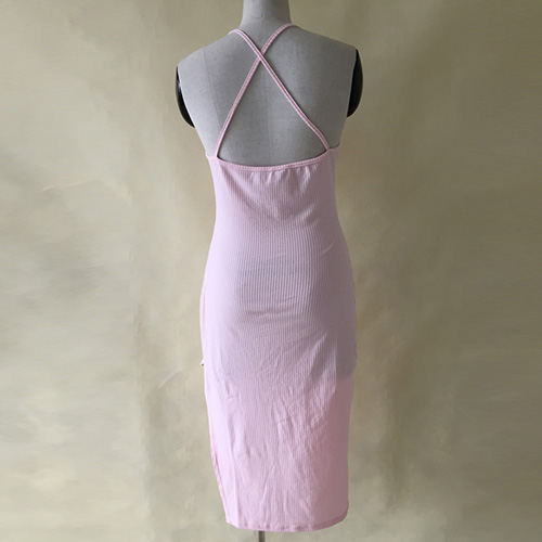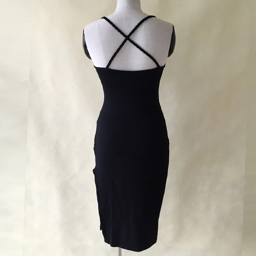 Sling style with backless and slit hemline design. Slim fit and package hip design perfect set