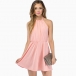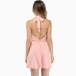 This dress features solid color style,with backless and halter design,sexy and chic.