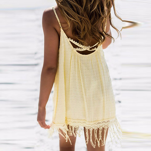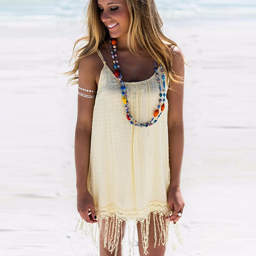 the focus on the beach. Sling style,with tassels hemline design makes it so chic and eye-catching.