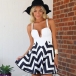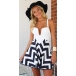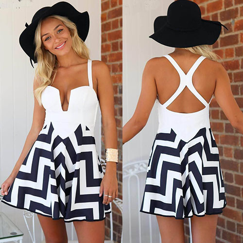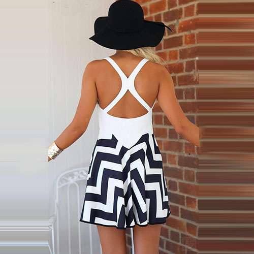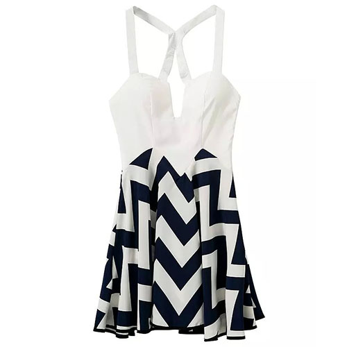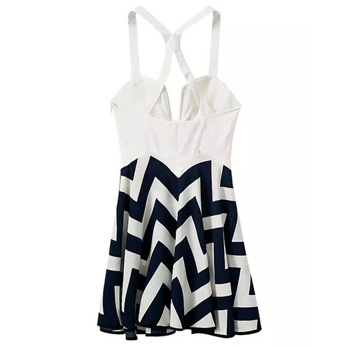 Sling style,with backless and v-neck design. Hemline with abstract geometric print