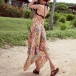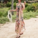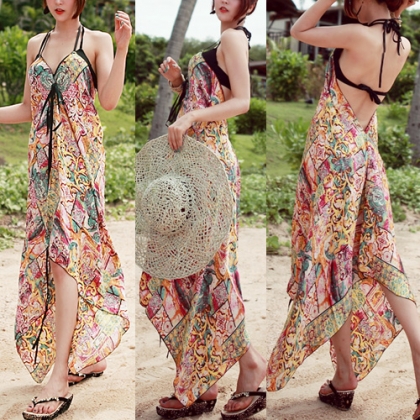 Sexy Backless V-neck Irregular Hem Floral Print Maxi Dress