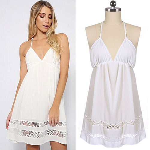 v-neck design will give you a sexy and charming look. Lace spliced design makes it so
