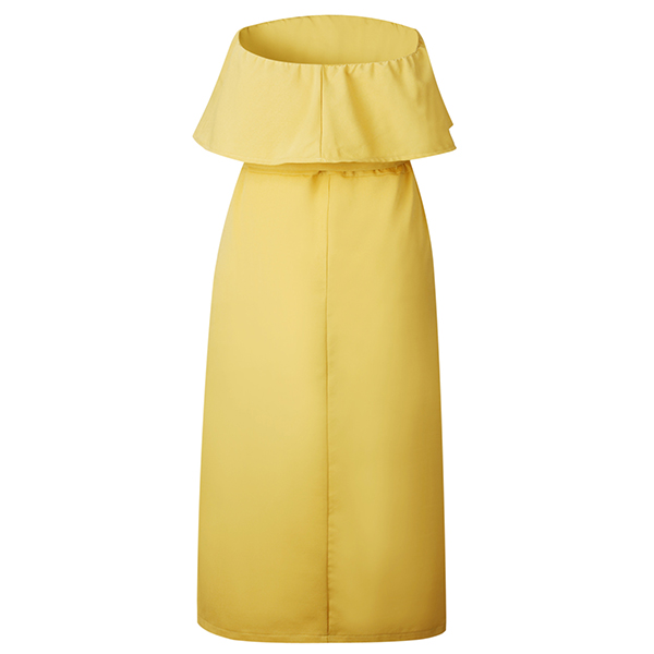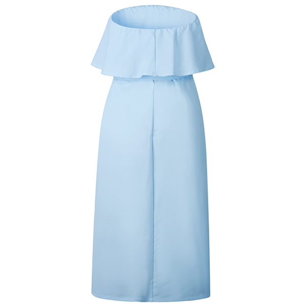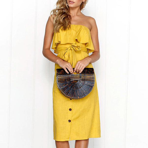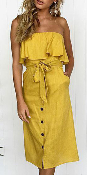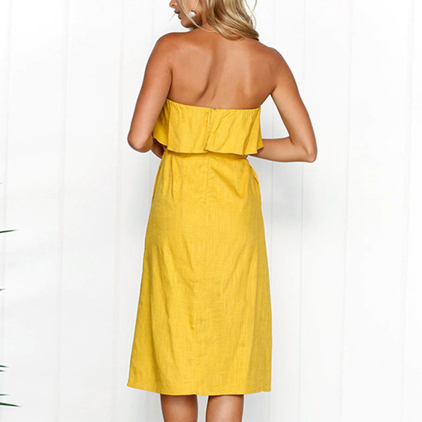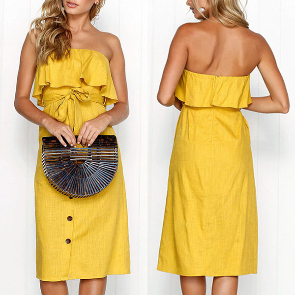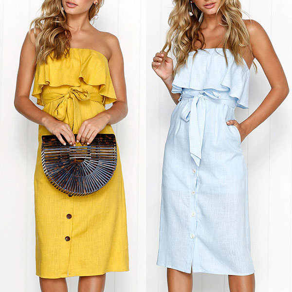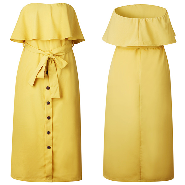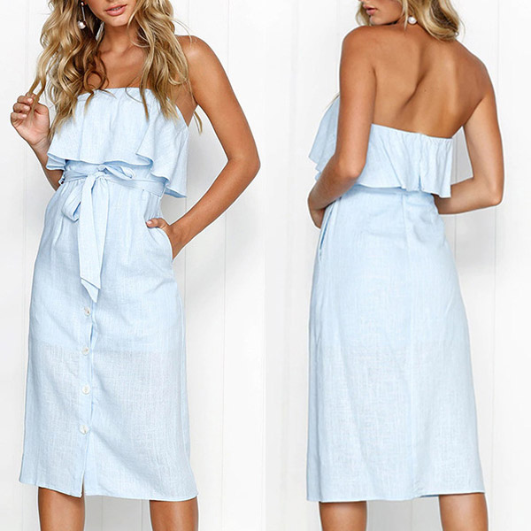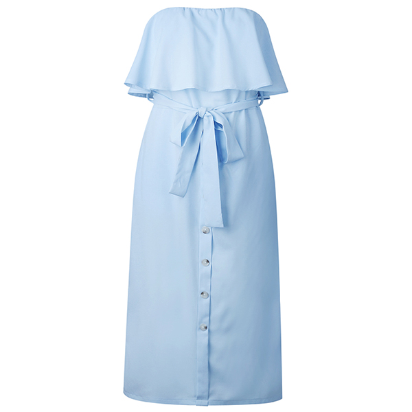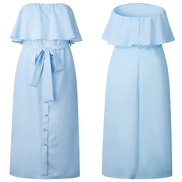 Sexy Boat-neck Sleeveless Ruffle Hemline Buttons Dress