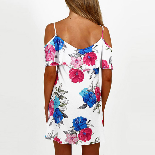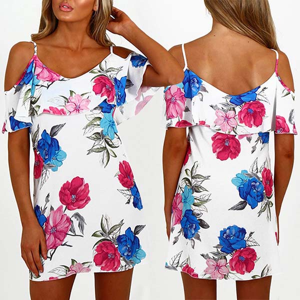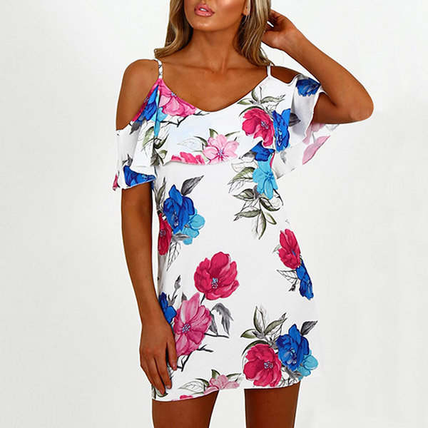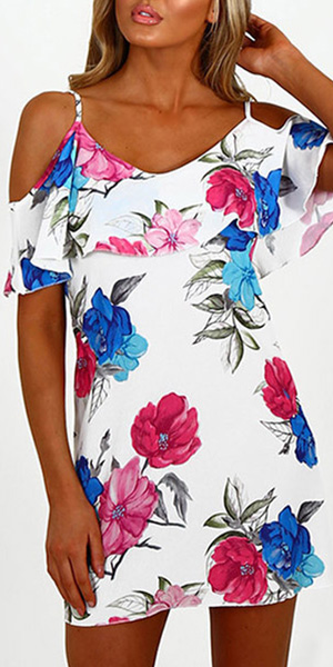Sexy Contrast Color Off-shoulder Printed Pattern Over-hip Dress