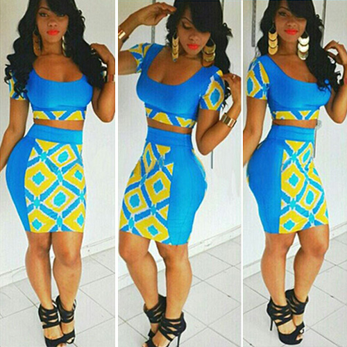 Contrast color style,featuring rhombus print pattern. Tops and bottoms can be apart with hollow out waist design,sexy and fashion. Short sleeve and low-cut cutout,perfect show your seductive curve.