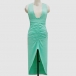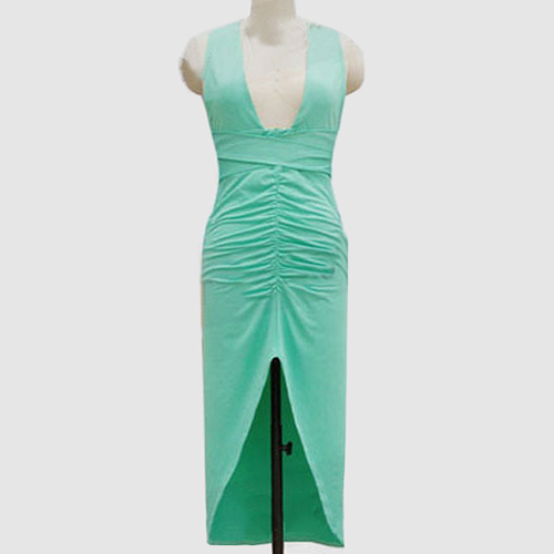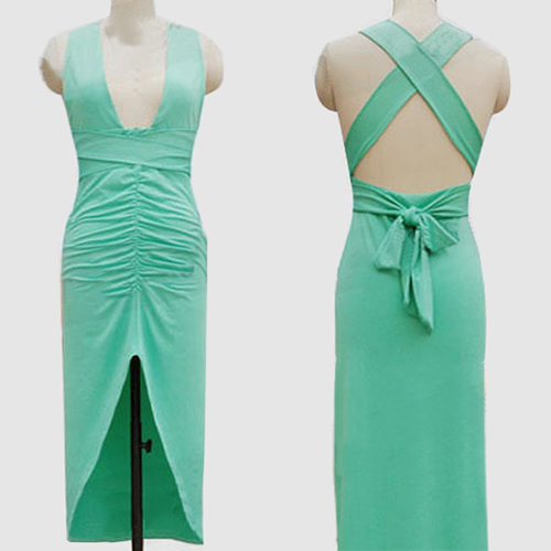It features flirty details,such as crossover backless,deep v-neck and irregular hemline.