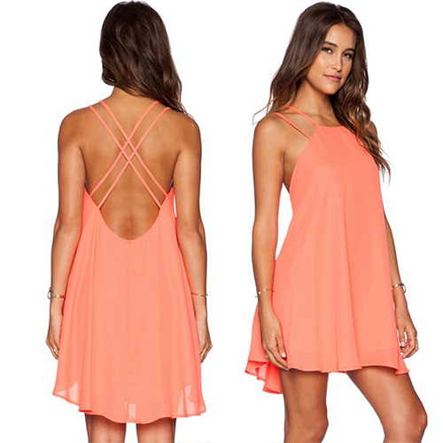 Having this breezy chiffon dress on hand,you would have a cool summer! Crossover backless