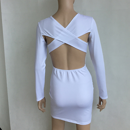 This dress is characterized by crossover backless design,sexy and charming. Solid color style,