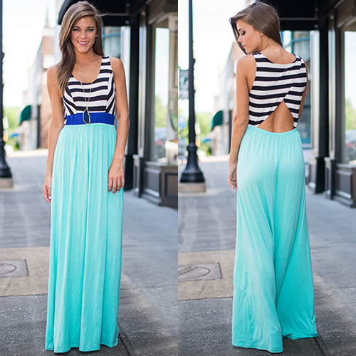 such as crossover backless,striped spliced,contrast color and maxi length. All these would make