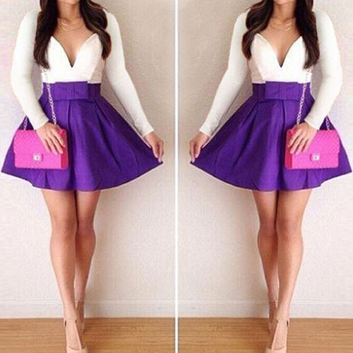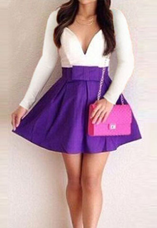 This dress features contrast color style,waist part with a bowknot for decoration,sweet and feminine.