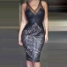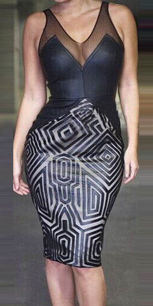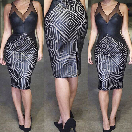 It features deep v-neck and see-through gauze spliced design. Your sexy flavor and seductive curve will shine in this dress.