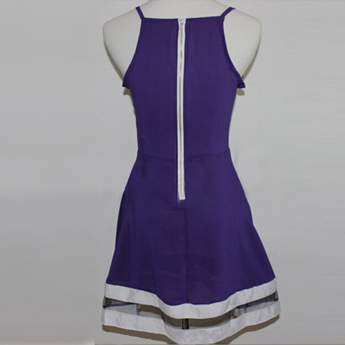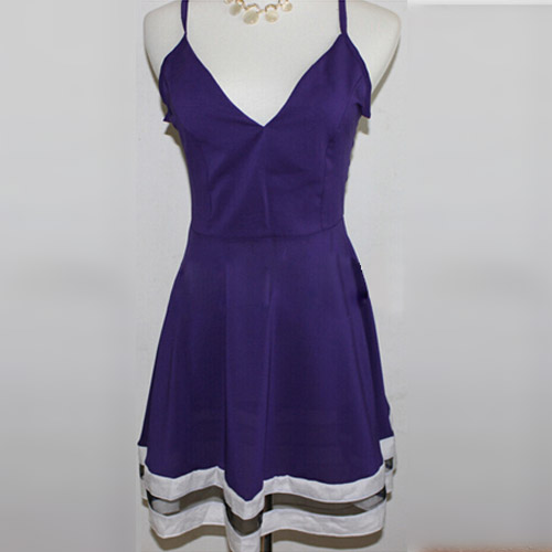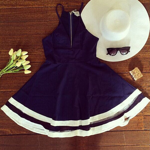 This dress is characterized by sling style,with sexy deep v-neck and high waist design. Flowing hemline with gauze spliced design. Backside zipper closure. Let it accompany your happy summer.