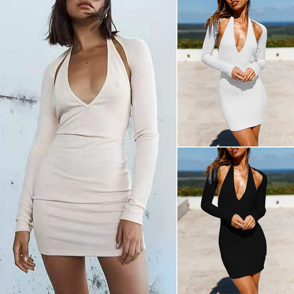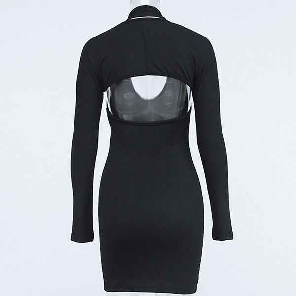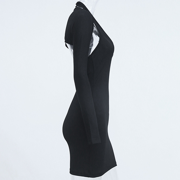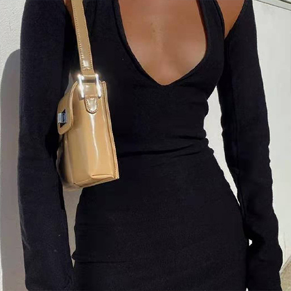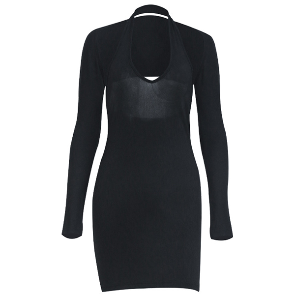 Sexy Deep V-neck Hollow Out Long Sleeve Slim Fit Party Dress