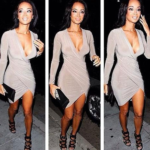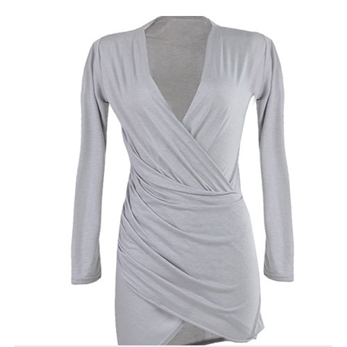 You will be the focus and definitely make men drool in this dress. Features deep v-neck style,showing your seductive cleavage,sexy and charming. Irregular hemline and ruched design. Pairing with sexy high-heeled shoes and elegant clutch,you are fashion queen!
