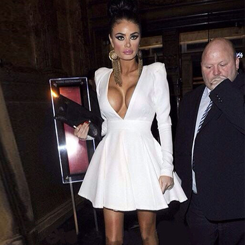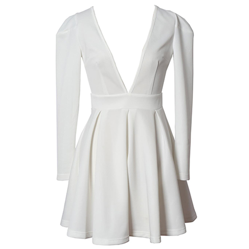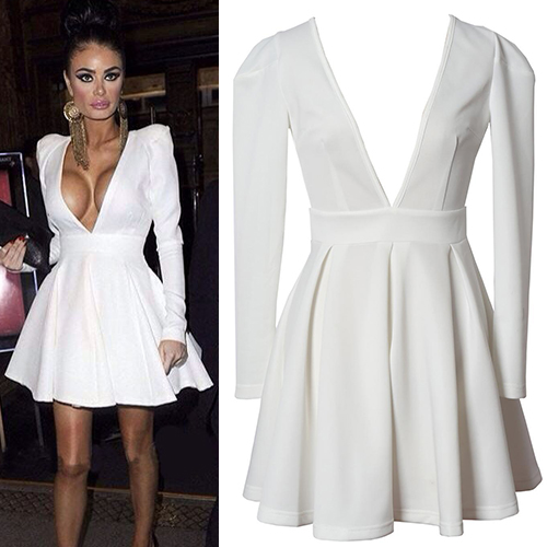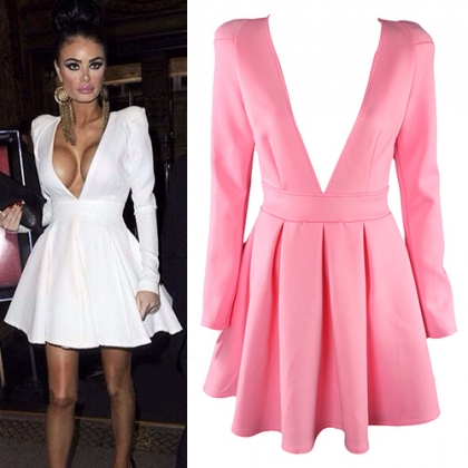 A sleek bodycon silhouette, a high waist, and a deep v-neck design,this long sleeve dress