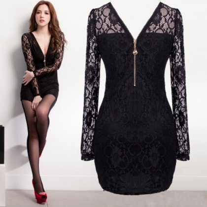 zipper design. Long sleeve,slim fit and package hip design,perfect set off women's seductive curve.
