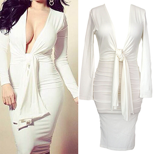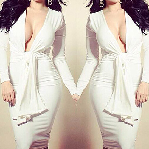 Sexy Deep V-neck Long Sleeve Slim Fit Pencil Dress