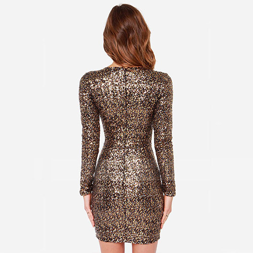 If wearing this dress to a party,you are certainly to be the focus and receive envious eyes. It features sequins for decoration,dazzling and glamorous. Long sleeve,sexy deep v-neck,slim fit and package hip design,perfect outline your seductive curve.