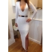 Show your charming curve and sexy flavor with this dress. It features deep v-neck style,showing your seductive cleavage. Long sleeve,high waist,slit hemline and slim fit. Your beauty will shine in this dress.